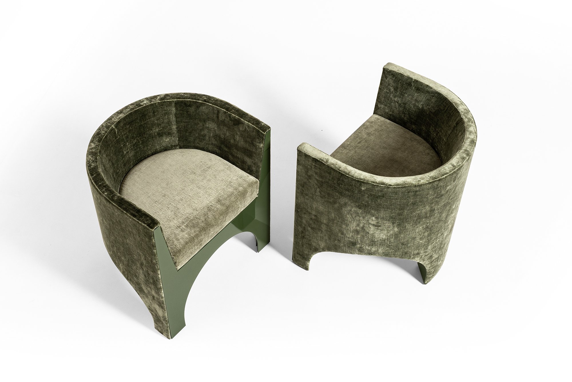 Nella versione imbottita, la parte anteriore laccata lucida crea un elegante contrasto con il velluto cangiante sui toni del verde dell’imbottitura, enfatizzando i giochi ottici di luce e volume e restituendo atmosfere soft e avvolgenti. Volta è completamente customizzabile nelle finiture e nei rivestimenti.